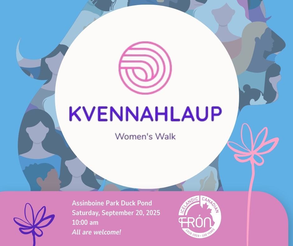 The Icelandic Canadian Fron is preparing to host its annual Kvennahlaup—known in English as the Women’s Walk—on Saturday, September 20 at Assiniboine Park. Traditionally held in June, organizers have shifted the event to September in hopes of attracting a wider range of participants. The walk begins at 10 a.m. at the Assiniboine Park Duck Pond, … Continue reading Kvennahlaup 2025